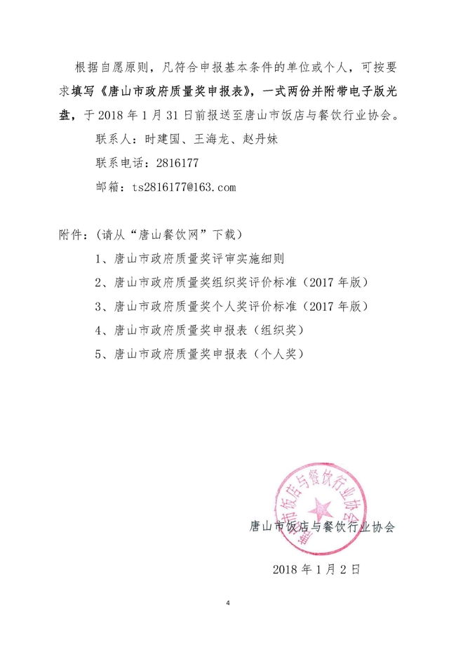 唐山市饭店与餐饮行业协会关于修改第四届《唐山市饭店与餐饮行业协会章程》报告的公示