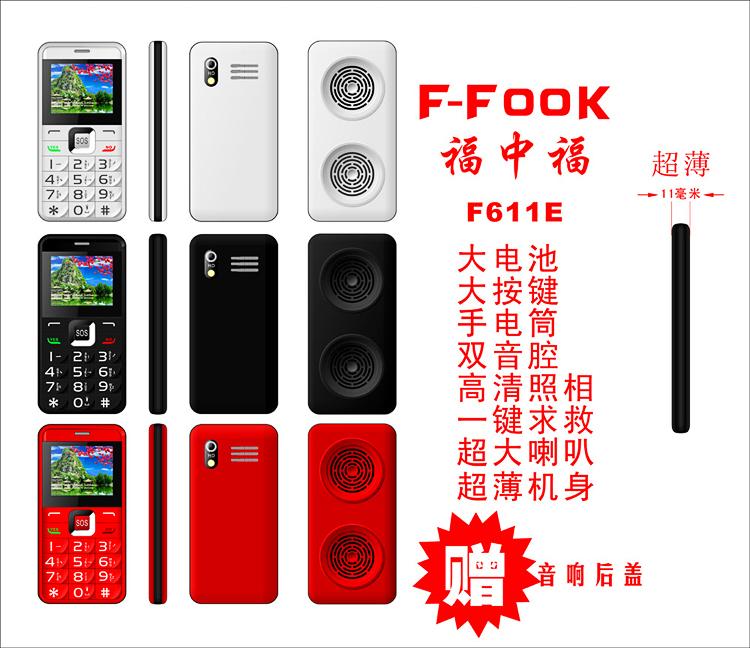福中福(F-FOOK)F611E老人手机超薄时尚老年手机双卡双待大字大音大键