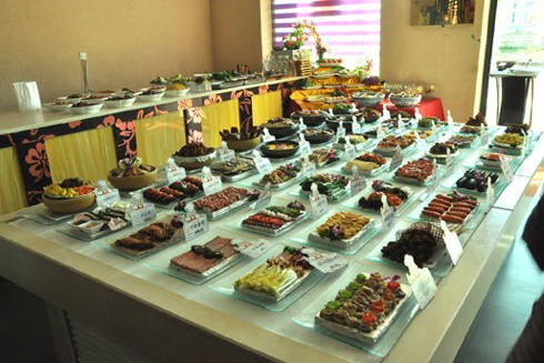 所谓明档,一般是将鲜活原料装盘陈列在醒目的地方,以吸引顾客。明档展示最早是从广东兴起的,后来传到全国,是由大排档升格为餐馆的一种模式。明档的摆设,大有学问! 餐馆设计明厨、明档,是餐饮业的一种进步。餐饮行业竞争到一定程度的时候,经营业主开始想尽各种办法吸引顾客。于是,他们便摸透了顾客“吃得放心”的心理,把明档搬到了餐厅,抓住顾客眼球,留住顾客的钱袋。明档的好处是让人一目了然,顾客喜欢的菜会多点。而且店家有了新菜,可以及时展示。所以如今大店、小店都做起了明档。 明档的摆放是十分讲究的,涉及到美观、冷藏、保鲜、成本控制等问题,我们总结了一些明档菜肴摆放方法,希望对大家有所启发。 明档的摆放设计知识 一、必须明确明档的重要性 (1)从布局上、设计上、规模上、艺术感染力上能体现出一个酒店的档次与 实力。 (2)从菜品的新鲜度、色泽、选料、搭配、刀工、造型、器具、艺术、位置、价格、亮度、卫生等各个点滴上能反映出厨房对菜品高度,疯狂追求的程度和严格的态度。 (3)明档是营销的战场和菜品营养搭配的基地,从中能反映出企业,提倡健康饮食和引导客人消费的高尚姿态,也能很好的找出市场营销的规律和变化,明档综合水平的高低影响着营业额的高低。 (4)明档是厨房对菜品抓精做细,上高度,快速度的一个突破口,经过严格有效的管理后,能加强和提高厨师的业务水平,和综合素质,也能以点带面的反映出厨房哪个环节出问题了,做到及时调整纠正。 二、理解什么叫做美 (1)整齐就是美 指军训菜品,部队作风,主要是硬件。做到规定区域内,餐具统一,支架一致,封膜平整,菜品视线整齐,间隔标准,上下冲齐,台布平整,做到近看一条线远看整齐划一一个面。 (2)明亮就是美 灯光的效果,把最美的菜品让它最完美的体现出来,就要靠灯光效果,不可太刺眼,折光刺激眼睛或太暗,体现不出菜品色泽和亮度。 (3)新鲜就是美 这是摆放明档的基本,一天必须最少全部换一次(特殊备案批准者例外),保持住青菜、肉类、海鲜最新鲜的颜色,也就是基本色。 (4)选料精就是美 明档是菜品的脸面,就要把最精美的原料摆出去,杜绝青菜不鲜亮、有虫子,杂物,肉类不新鲜,选料不上档,海鲜摆放变质的、变色的、脱水的。 (5)刀工精细均匀就是美 做到原料整齐划一,刀工适合菜品的工艺标准,切不可粗制滥造。 (6)搭配合理就是美 菜品主配料搭配,不可超过5种色,不可花哨,喧宾夺主,要突出主料。香芹、花朵或点缀物,不能放在菜品原料上,点缀不能多、乱、杂,要鲜亮。 (7)造型大方就是美 造型是在原料新鲜,选料精美,刀工精细,搭配合理的基础上建立的,否则,再得体的造型也有失大雅。造型必须要与价格,量化相互应,与相隔菜品的造型有变化,不可千篇一律。 (8)器具得体就是美 器具首先要卫生,不能有油污、破损。器具的使用要照顾菜品的性质和整体效果,万不可随变更换明档餐具。带煲、带汤钴、带沙锅、煲仔的菜不允许摆在明档的顶部,避免挡住菜品的视线只看盛器看不清菜。 (9)位置固定就是美 我们的菜品多,固定好区域位置是必须去做的。位置:固定好,便于检查,推销,记录和调整,坚决杜绝大小区域的随意更换。 (10)卫生到每个细节就是美 卫生必须细节化,彻底清理死角,如菜牌、镜面、台布、保鲜膜的高亮度及整体,有卫生才有安全感,才有档次。 (11)注重效率就是美 注重效率,就是注重整体,必须做到在规定时间内把高质量高水平的菜品摆放在规定区域,高效率的工作必须建立在前10项细节之中,杜绝只重视效率不重视质量,效率与质量并存。 只有把以上十一项美都做到,达到,才能基本进入艺术菜品展台的大堂,否则艺术菜品将是一句空话。 三、认真按要求做到 明档菜品,达到要求后就定为现阶段标准,之后不可随便更换。不经领导同意随便更换菜品摆放标准,达不到要求的将严肃处理。切记明档菜品达到要求后是正常营销流通,而不是因为各种质量问题、协调问题、营销问题让其盘存恶性。 【案例】广州中心皇冠假日酒店明档设计 广州中心皇冠假日酒店是一家著名的国际酒店IHG集团下属的五星级酒店,旗下中西餐厅及宴会厅常年推出不同主题的特色中西美食、主题茶歇,特色的明档布置经精心策划设计,很受欢迎,其主理者是广东省厨委会副会长、粤港澳十大名厨之一的莫代泉,英文名叫“Martin”,他是一个喜欢挑战的,充满着活力的一名行政总厨;他的菜品也和他的人品一样,新颖,与众不同、喜欢创新,大胆尝试,更充分融和中西美食,在不断推出最新的fusion菜式,每每都可以给人惊喜。 莫师傅说把粤菜之魂和环球美味融合,把西餐的酱汁融入中餐的烹饪,这是他最为快乐的事情。作为行政总厨,他每天忙碌着广州中心皇冠假日酒店的两个中餐厅—百粤楼和滋味馆,以及一个提供国际美食的元素全日西餐厅,不断变换着中菜、西菜、国际美食汇聚的特色自助餐,务求提供完美的环球国际美食,让所有的食客体验舌尖上美食带来的那一份份喜悦!