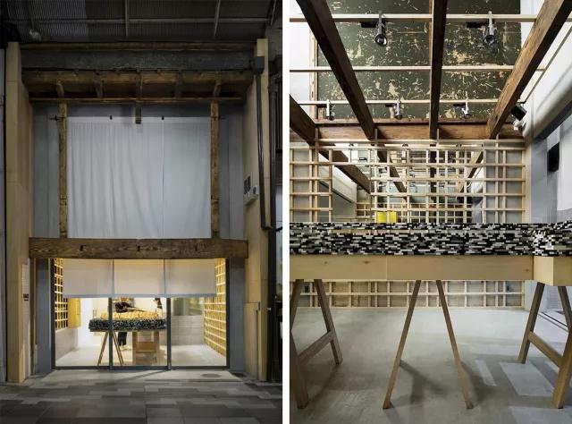 陈列台选择什么样的材料?这得从整间店铺的风格来考虑。Bake Cheese Tart 的京都店,选址于商业街。不过很特别的是,这家店的前身是一栋年代感十足的老建筑。
