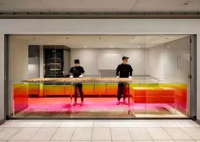 让还没有轮到购买结账的顾客,透过玻璃饱足眼福,无形中也能加强顾客们的购买力:等了这么久,看着这么好吃,怎么能不多买点?