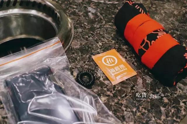 “三件套”眼镜布、围裙、手机套没有丢,舞面没有丢,锅周围的抽风小孔等等一系列的捞派风一应俱全。