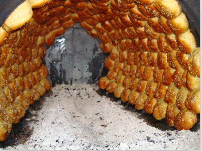缸炉烧饼是京津冀地区特色小吃之一。主要流行在河北地区,其中以唐山地区的缸炉烧饼为代表,以缸横卧,内壁贴饼,外温内烘是其独特的制作方法,缸炉烧饼呈圆鼓形,色焦黄、味鲜美,香酥可口,别有风味,是外地游人极喜爱的食品。
