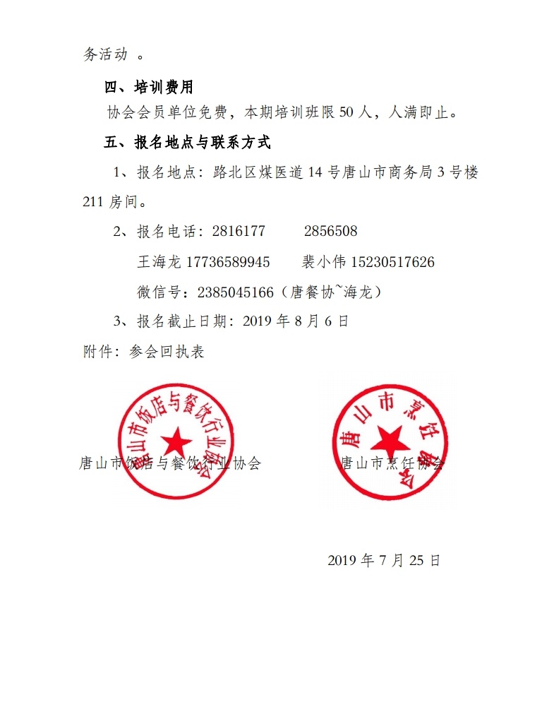唐山烹饪协会协办