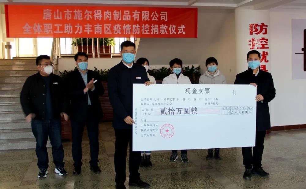 在募捐仪式上,公司党支部书记、总经理朱凌对施尔得广大职工积极参加捐助的爱心之举及在疫情期间坚守一线的奉献精神表示衷心的感谢。同时,他还表示,政府和广大消费者在疫情爆发期间给予了企业很大的支持和帮助,施尔得人铭记于心,并将在搞好生产、满足社会供应的同时,积极捐款捐物回馈社会,坚决和政府、和广大人民群众共战疫情、共克时艰,打赢这场疫情阻击战。募捐仪式上,施尔得肉制品有限公司500名职工共捐助善款20万元。