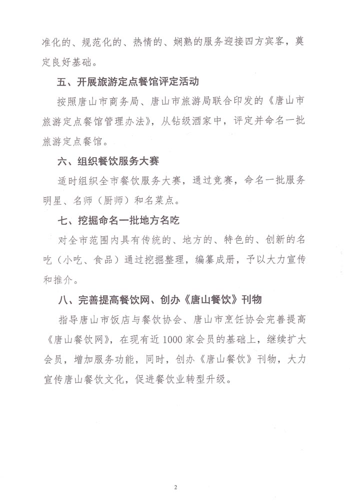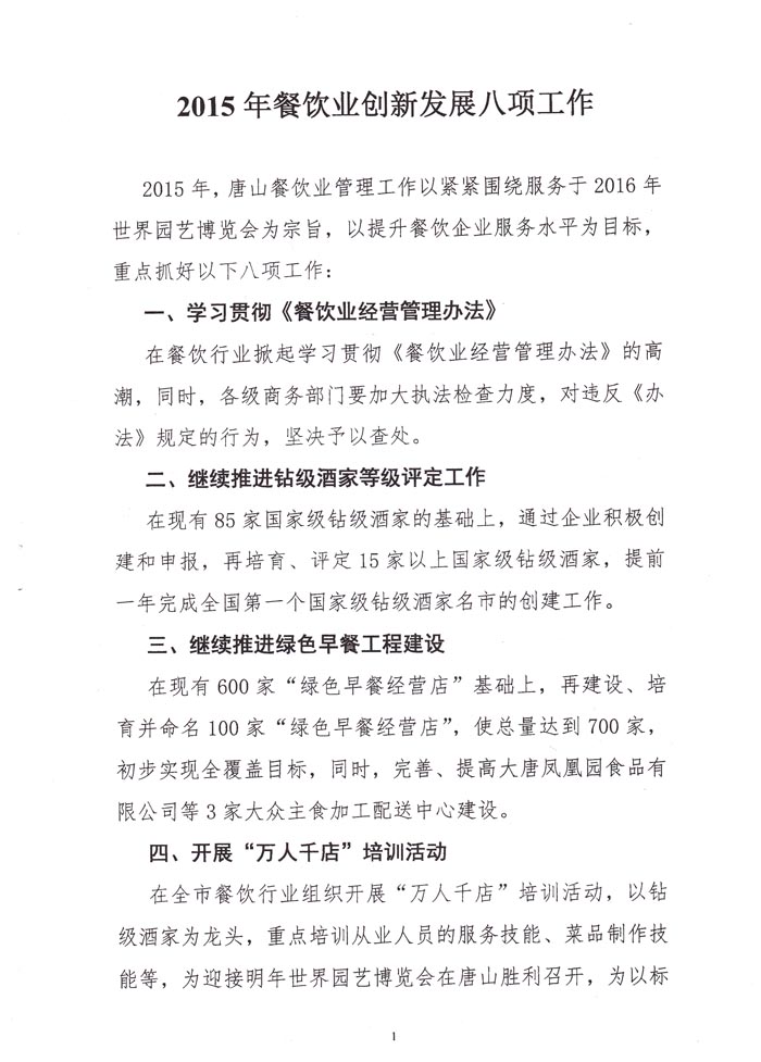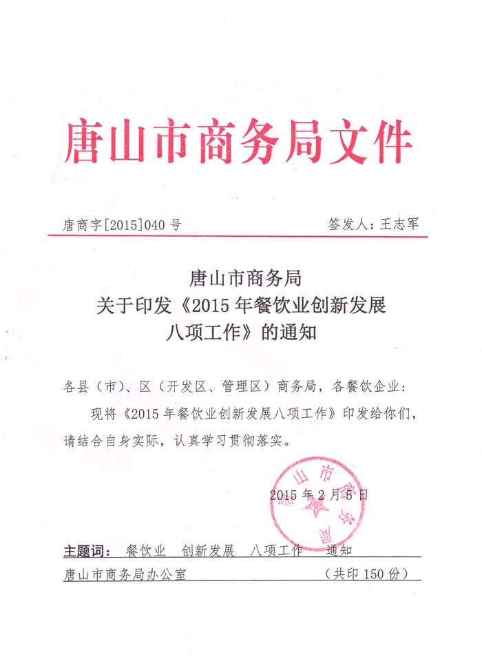 唐山市商务局关于印发《2015年餐饮业创新发展作项工作》的通知