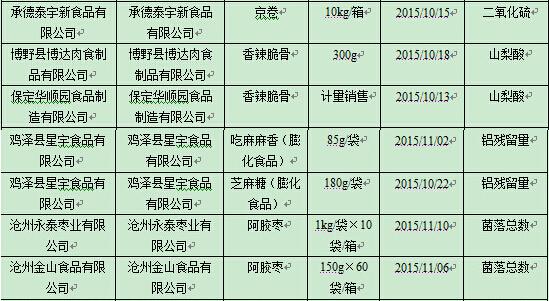 河北发布食品安全抽检信息公告 16批次不合格