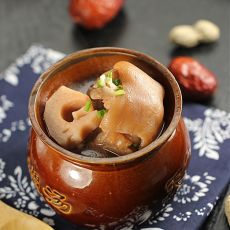 莲藕是湖北人冬季煨汤最喜欢的食材之一,白嫩嫩的藕煮熟后变成了粉色,性质也由“凉”变“温”,可滋阴、养血。藕很容易入味,浓郁的汤汁浸入藕中,炖煮后莲藕非常粉糯,口感绵软;而含有丰富的胶原蛋白的猪手,味道非常香浓,内外滋养。 其实猪蹄的脂肪含量也比肥肉低,并且不含胆固醇, 所以不要太惧怕它;如果不喜油腻的话可以把上面的一层油撇掉,拿喝起来就就一点负担也没有了, 所以这么润肤美颜汤也赶紧来上一碗吧。(普通)