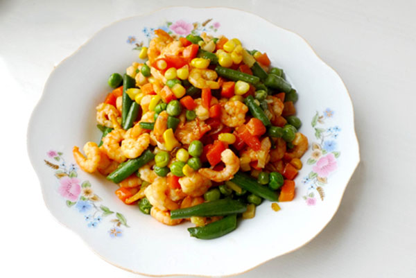 “五彩缤纷的蔬菜丁加上鲜香可口的虾仁,想信,你一定会喜欢。”(图文)