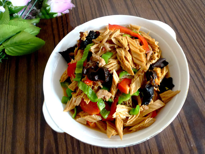 彩椒木耳炒腐竹