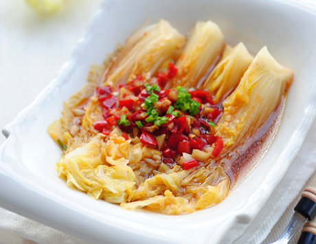 材料:娃娃菜2棵、剁椒50克 调料:葱末、姜末、蒜末各1匙、蒸鱼豉油1小匙、蚝油1小匙、胡椒粉少许、植物油适量(图文)