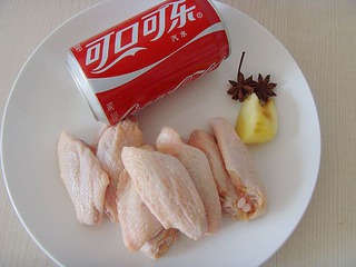 材料:鸡翅中、可乐一听、八角、姜、葱段、料酒