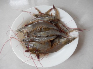 摆上虾子。