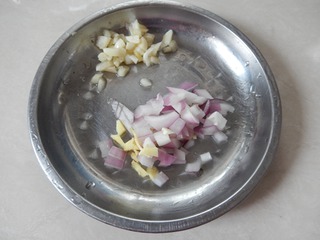 切好洋葱丁、姜末、蒜末。