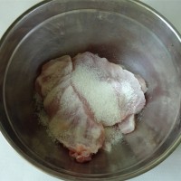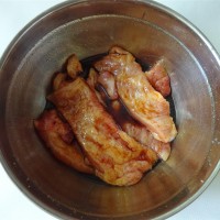 5把肉连同腌汁一起移入保鲜盒内,盖好入冰箱冷藏过夜。
