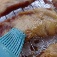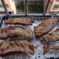 6腌好的肉摊在烤网上稍微沥去酱汁。