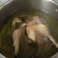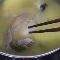 9.将鸡汤熬好,用筷子轻易戳入鸡腿肉中。