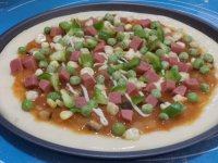 这款比萨称其为火腿比萨,实际上所选用的食材不止火腿一种。制作比萨酱的食材不计算在内,也还有5、6种之多。食材多的优势在于:一是味道好。二是营养丰富。