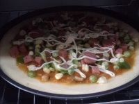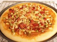 我做的比萨饼就是普通的发面饼。讲究些可以按做面包的配方及工序加工比萨饼。