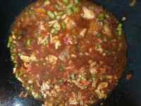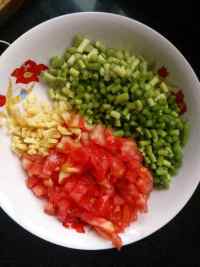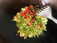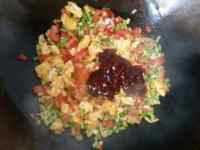 4.蛋煎好加入姜蒜苔西红柿丁煸炒