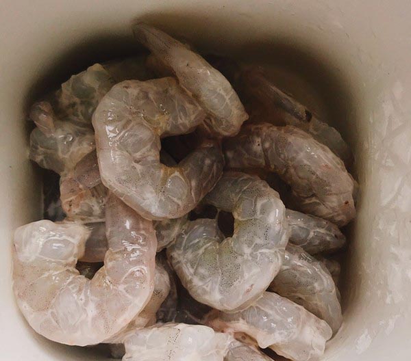 虾去头去壳去虾线,用清水洗净,用厨房用纸吸干水分,虾仁加白料酒、淀粉抓匀。