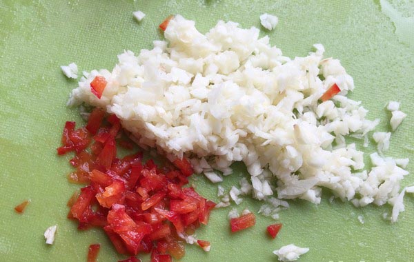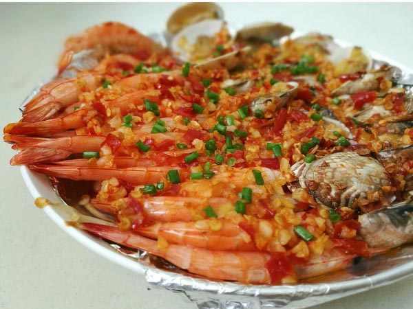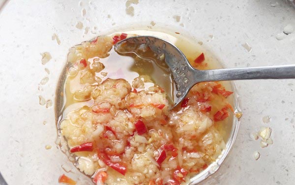 因为花蛤没有腌制,所以在剩余的蒜蓉油中加一点点盐,搅拌均匀,码到花蛤上