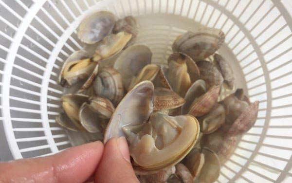 大概一到两分钟,花蛤就基本开口,个别没开口的可以用手指掰开就行。