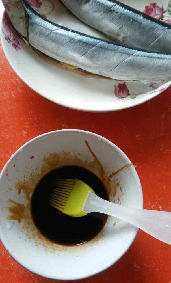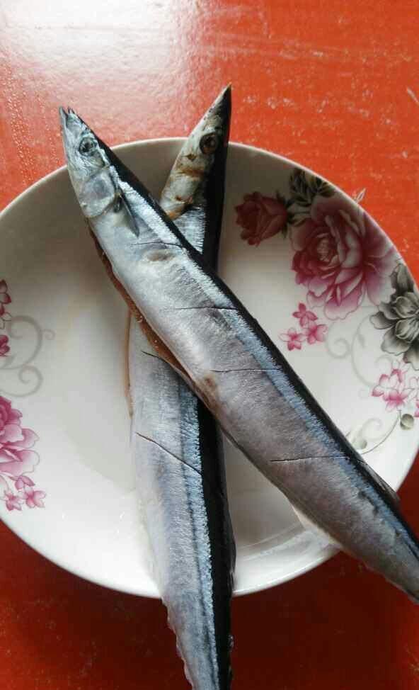 秋刀鱼处理干净,表面划几刀方便入味