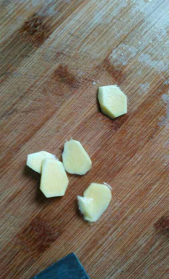 姜去皮洗净切片,放鱼肚里