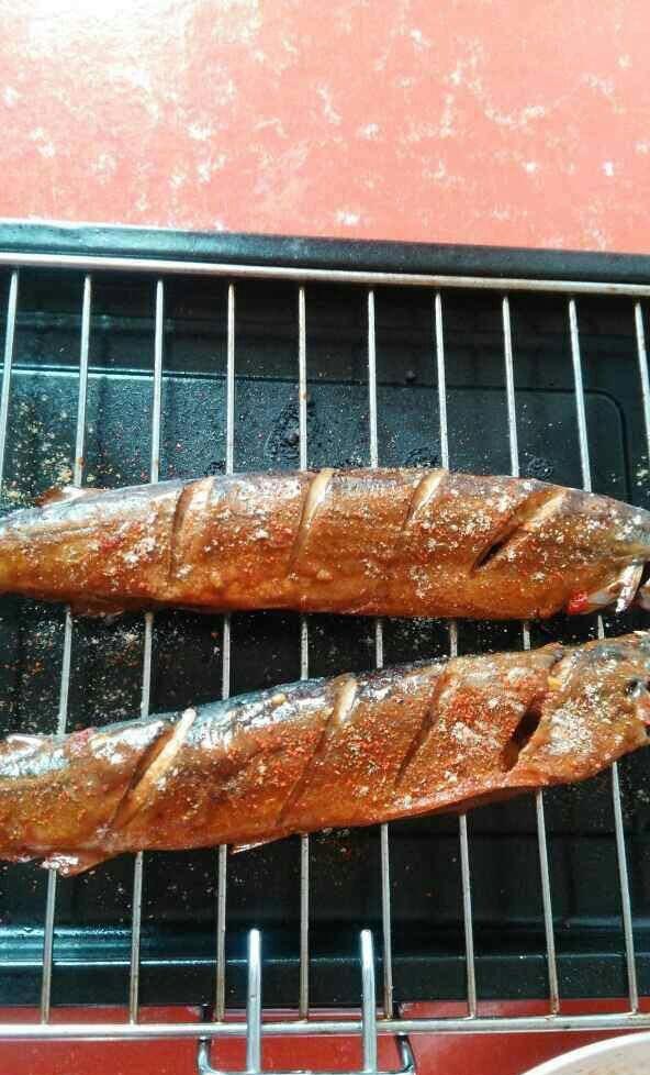 腌好的鱼放到烤网上