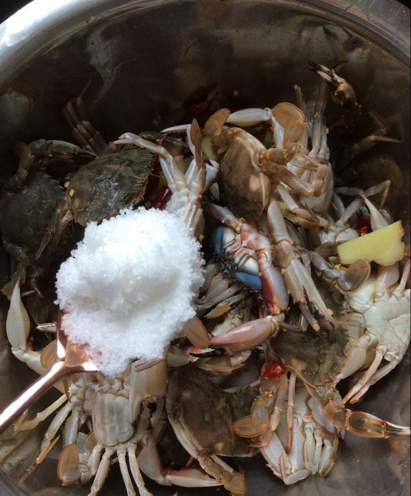 加入适量的味极鲜,只要末过花盖蟹即可