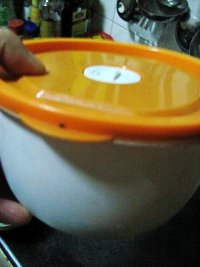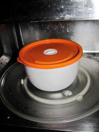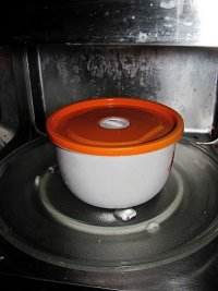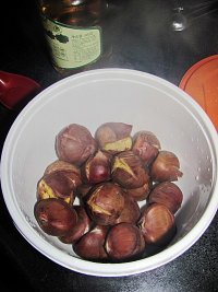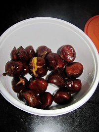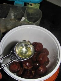 然后把栗子放入微波保鲜盒中,把微波孔打开