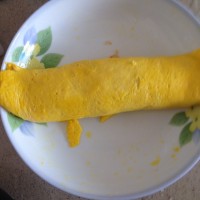 卷成蛋卷上锅蒸15分钟,蒸好后不要马上拿出来,等凉了再拿出来切成卷