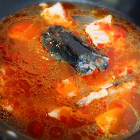 煮开后立即将鱼肉捞出,再盛一些汤到碗中。