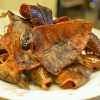 手撕鱿鱼,这可是排名前几的零食啊,那鲜香那嚼劲,欲罢不能。家里刚好有自家晒乌贼干,灵机一动,自己动手,丰衣足食呀(乌贼干鱿鱼干傻傻分不清楚,不是一个样么,童鞋,度娘吧)。乌贼干本身就有咸味,因此调料中无需放盐。