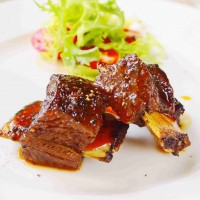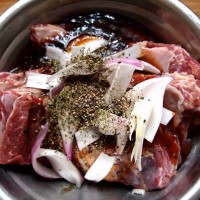 这种现成的牛排酱在以前的菜谱中也使用过,但量较少,所以要适当添加些上步骤中的调味料做为补充,才够这一大块肋排所用的量,当然,也使味道层次更加丰富。