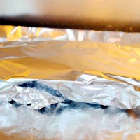 将煎过的牛排包入锡箔纸中,放入垫好锡箔的烤盘;