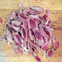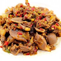 放入鸡胗翻炒,烹入料酒炒至完全断生。加生抽,老抽,醋,盐,炒匀即可。