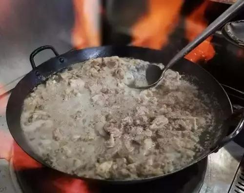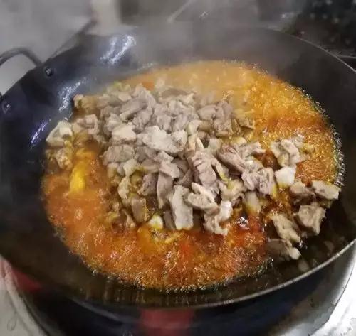 这是新疆“胖老汉”餐厅的一道“新疆名菜”,选用木垒小羊肉制作,汁浓肉香,面条劲道,色泽红亮。木垒羊肉是新疆昌吉州木垒县的特产,肉质鲜嫩,毫无膻味,属于国家农产品地理标志保护产品,是当地人招待贵宾的必备食材。