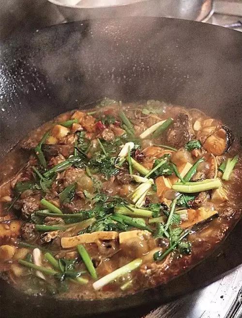2、糖色炒得略欠一点即需下主辅料,同炒几下后糖色恰到好处,如果等糖色炒好再下料,翻炒后糖色就会变老、口味发苦。