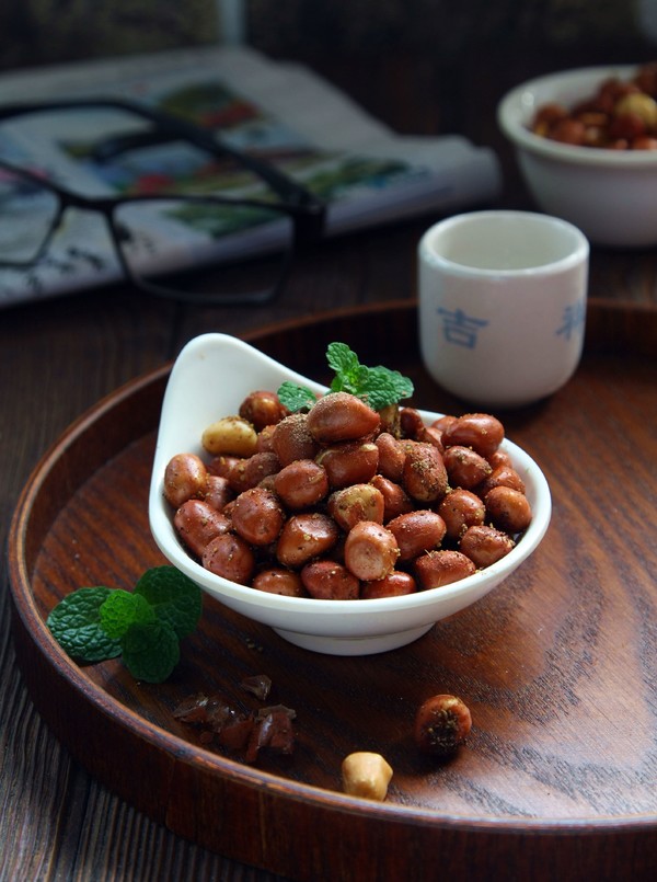 迅速倒入一个平盘摊平,淋入一小勺白酒,拌匀后撒椒盐拌匀冷却后即可食用