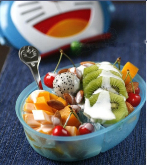 盛夏季节时,建议你在步骤(5)中,将火龙果,芒果,猕猴桃和樱桃放入盒里,盖上盖子,放入冰箱内冷藏30分钟,拿出来后再放大杏仁,最后淋上冰镇过的酸奶,口感会更好。