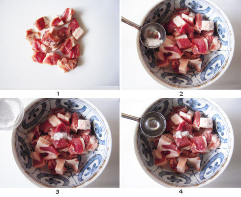 2.将羊肉块放到一个大的容器里,加入白糖。