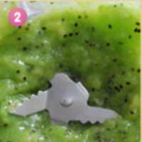 2. 把切成块的奇异果用搅拌机打碎。