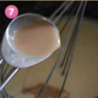 6. 煮开后的牛奶淡奶油中倒入糯米粉糊,搅拌均匀。