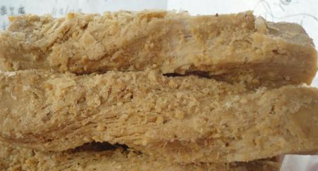 1、制馅:将经过挑选的花生仁倒入锅内用温火慢炒,妙好( 指成色)、炒熟,搓去红皮,簸净,然后粉碎成面酱状(即花生馅),装入容器备用。应注意的是当日生产的花生馅必须当日用完,以防变质,影响酥糖的质量。