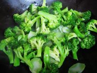 7、倒入西兰花翻炒,