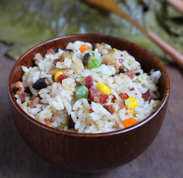 荷叶蒸饭是一道营养丰富,鲜香味美的家常蒸饭。用做荷叶蒸饭的米饭可以用糯米饭,也可以用糯米和普通米各半,还可以只是普通米饭都可以。米饭里的配料也可以自行选择,如青豆、玉米、干贝、火腿肠等都可以,当米饭吸收了佐料的精华,再加上荷叶的清香,简直美味不可挡。