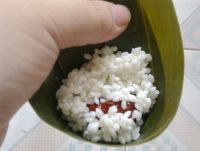2。在包粽子的时候,糯米不要加太多,不然最后裹的时候会漏米。
