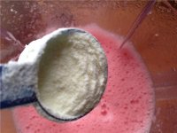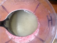4.加入一勺牛奶,用搅拌器打成西瓜汁。